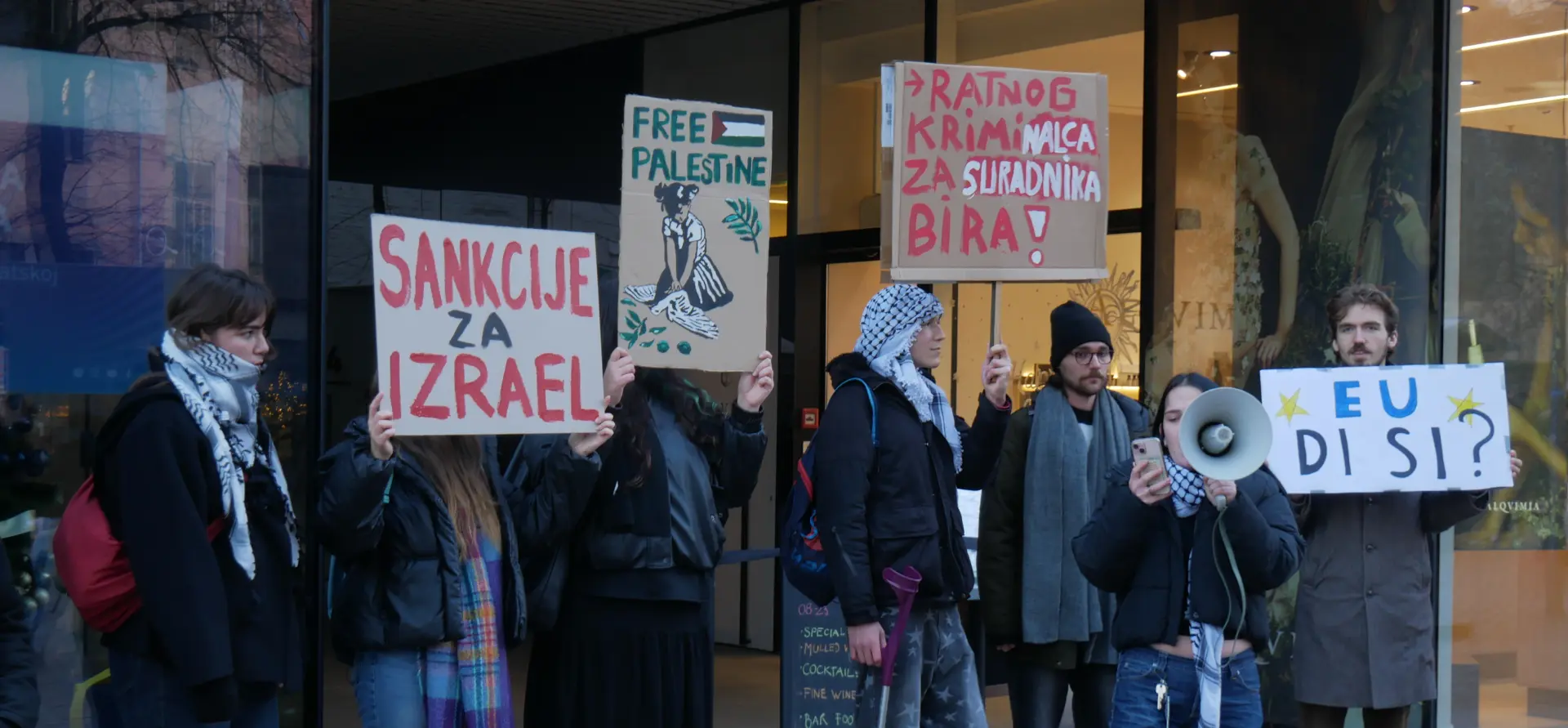 Prosvjednici drže da je Europska komisija dosad “tek ovlaš razmatrala isključenje Izraela, predlažući djelomičnu suspenziju koja bi suradnje s izraelskim institucijama i vojnom industrijom smanjila za tek 20%”.