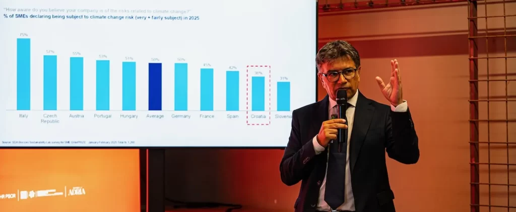 Manlio de Silvio, profesor i istraživač poslovne škole SDA Bocconi, istaknuo je: “Naš cilj nije samo ovom Bijelom knjigom prikazati trendove nego i ponuditi konkretne preporuke – kako institucijama tako i samim poduzetnicima. Uspješna održiva tranzicija traži suradnju. MSP-ovi već pokazuju otpornost i inovativnost, a sada je vrijeme da ih sustavi u kojima djeluju u tome dodatno podrže.ˮ U fokusu događaja bila je snažna poruka: usprkos izazovima s kojima se susreću, integracija održivosti u poslovne strategije MSP-ova u Europi sve je prisutnija, a financijski benefiti tih praksi sve su mjerljiviji.