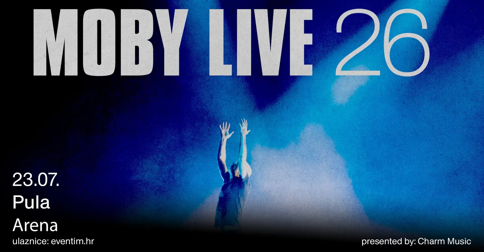 Jedna od najutjecajnijih figura suvremene glazbe, Moby, stiže 23. srpnja 2026. u pulsku Arenu, gdje će održati svoj prvi samostalni koncert u Hrvatskoj. Ovaj glazbeni vizionar 2024. je obilježio 25. godišnjicu svog epohalnog albuma Play, a u 2026. godini kreće na novu veliku turneju s potpuno novim live spektaklom.