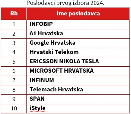 Rezultati istraživanja odražavaju želje i očekivanja radnika, odnosno pokazuju u kojim bi tvrtkama ispitanici najradije nastavili svoju karijeru kada bi mogli slobodno birati.