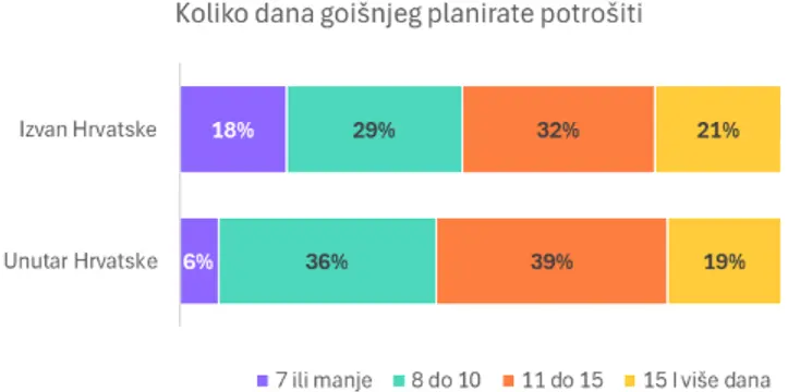 Unatoč medijskim naslovima kako je Hrvatska za domaće turiste postala skupa destinacija, istraživanje pokazuje nešto suprotno. Oni koji putuju van Hrvatske planiraju potrošiti više, u prosjeku 1.898 eura. Usporedno s njima ispitanici koji planiraju ljetovanje unutar Lijepe naše planiraju potrošiti oko 1.330 eura. Ipak, ta skuplja ljetovanja često i traju kraće. Na putovanja izvan Hrvatske ispitanici potroše do 7 dana, dok su domaća putovanja rjeđe tako kratka.