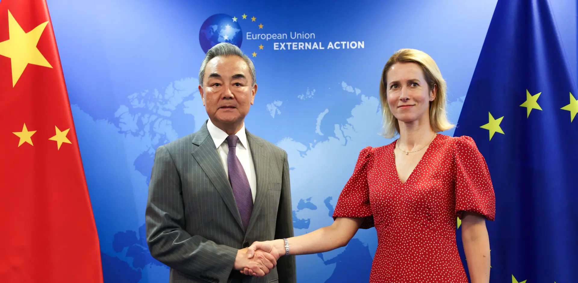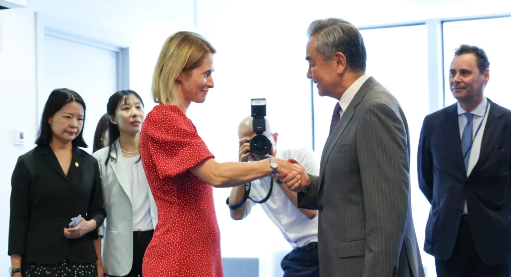 Visoka predstavnica EU za vanjske poslove i sigurnosnu politiku Kaja Kallas i kineski ministar vanjskih poslova Wang Yi; Foto: Europsko vijeće