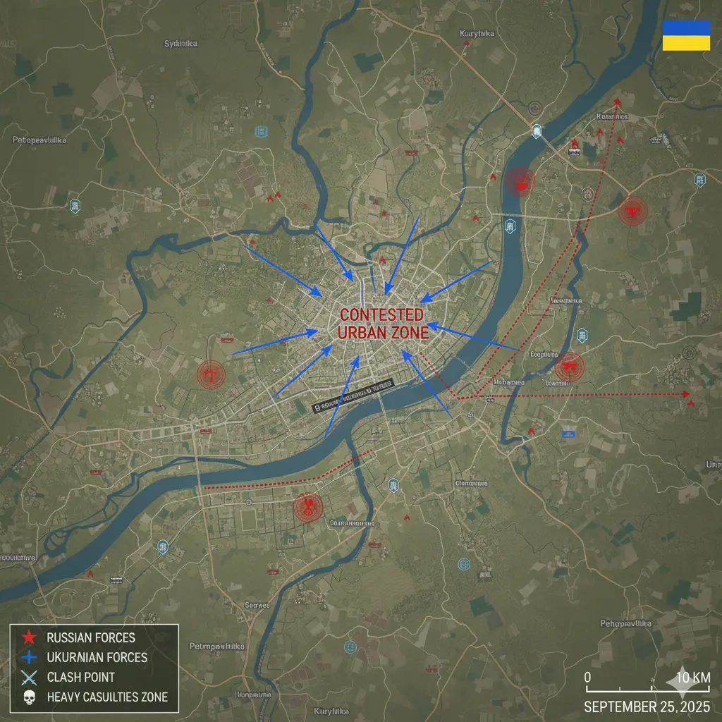 U rezimeu, Rusi s 23. rujna 2025. tvrde da kontroliraju 5.600 od 8.600 zgrada.