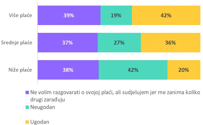 Očekivano, ispitanicima s višim plaćama manje je neugodno o njima i razgovarati (iako razgovaraju rjeđe nego oni s niskim primanjima).