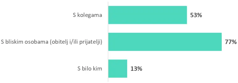 Kad je riječ o tome s kim se priča o plaći, najčešći su sugovornici prijatelji i članovi obitelji – 77% ispitanika ovu temu dijeli upravo s njima. No, zanimljivo je da i na radnom mjestu razgovori nisu rijetkost pa tako polovica zaposlenih (53%) o plaći priča s kolegama.