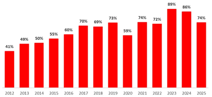 No, to je gotovo ‘u dlaku’ jednako udjelu radnika koji su božićnicu doista primili prošle godine (75%), što sugerira da se očekivanja polako usklađuju s realnošću.