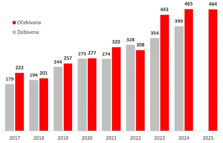 Zanimljivo je da su radnici nekad puno preciznije pogađali iznose koje će dobiti od poslodavca. Prije uvođenja eura, predviđanja zaposlenih bila su gotovo “u cent”, a odstupanja minimalna. No s prelaskom na novu valutu pojavio se veći jaz između želja i stvarnosti. Iako su naša očekivanja tradicionalno nešto viša od uplaćenih iznosa, tek je 2023. došlo do osjetnijeg precjenjivanja božićnica, stoga je dojam da se zaposlenici još privikavaju na iznose u eurima.