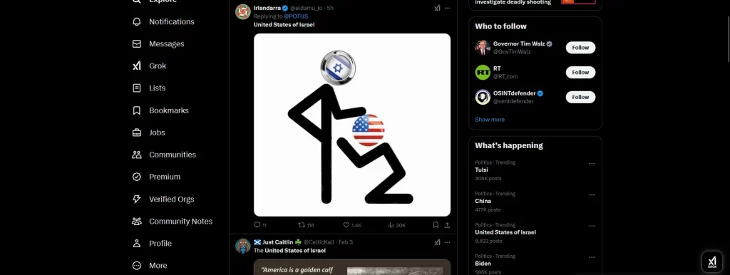 Cionistički plan za Gazu u ponedjeljak i utorak iskri i provocira gomilu objava na društvenom mikroblogu X, gdje se u srijedu u trendu našla oznaka “Sjedinjene Države Izraela” uz koju se nižu misli o cionističkoj okupaciji američke administracije, sluganstvu i poltronstvu.