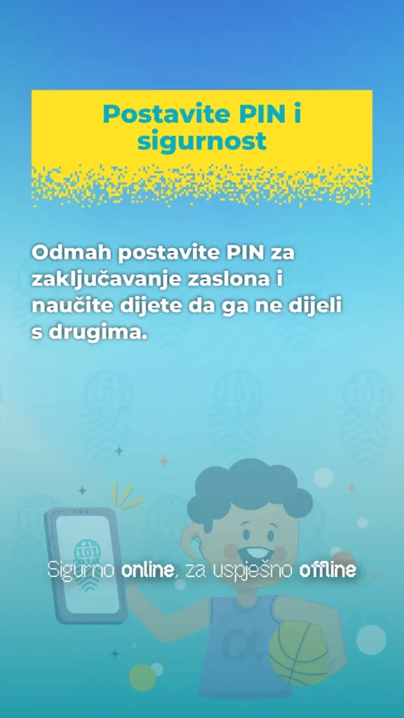 • Postavite PIN i sigurnost: Odmah postavite PIN za zaključavanje zaslona i naučite dijete da ga ne dijeli s drugima.